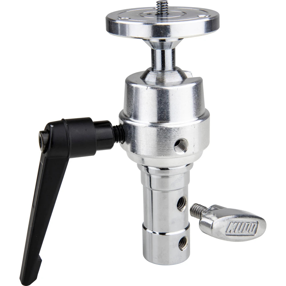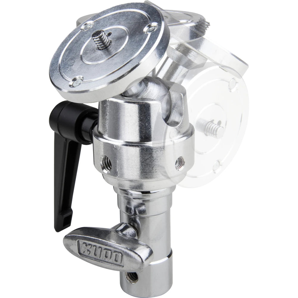 Fabriqué en métal robuste, ce Super Grip est équipé d'une rotule dotée d'un tenon mâle fileté 1/4''-20 sur une plaque ronde pour appareil photo et d'un adaptateur TVMP. Ça te permet de positionner la caméra dans n'importe quelle direction sur le trépied ou sur n'importe quel équipement équipé d'un petit tenon de 5/8" (16 mm) ou d'un récepteur junior de 1-1/8" (28 mm). Il y a trois vis de réglage sur la plaque pour bien caler la caméra en place.