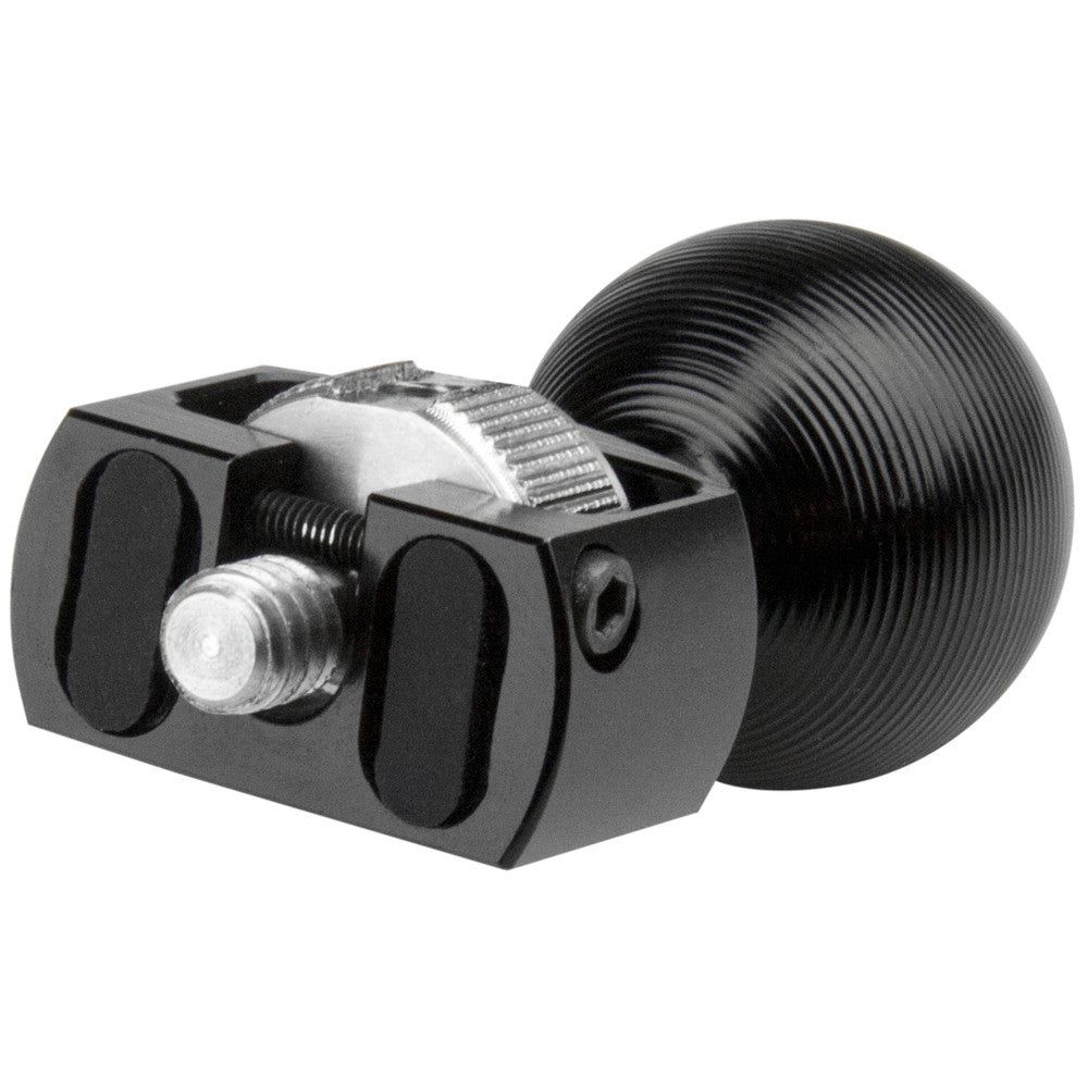 Une bille en aluminium usinée CNC avec une vis 1/4 pouce-20 la rend compatible avec d'autres accessoires Super Knuckle. Elle se monte facilement sur une cage de caméra grâce à ses trous filetés 1/4 pouce et est équipée d'une vis à molette pour un verrouillage rapide et une installation pratique et solide. Le patin en caoutchouc antidérapant situé en bas évite les rayures. Elle est aussi dotée d'un trou permettant d'utiliser une clé Allen n° 3 pour la resserrer si besoin.