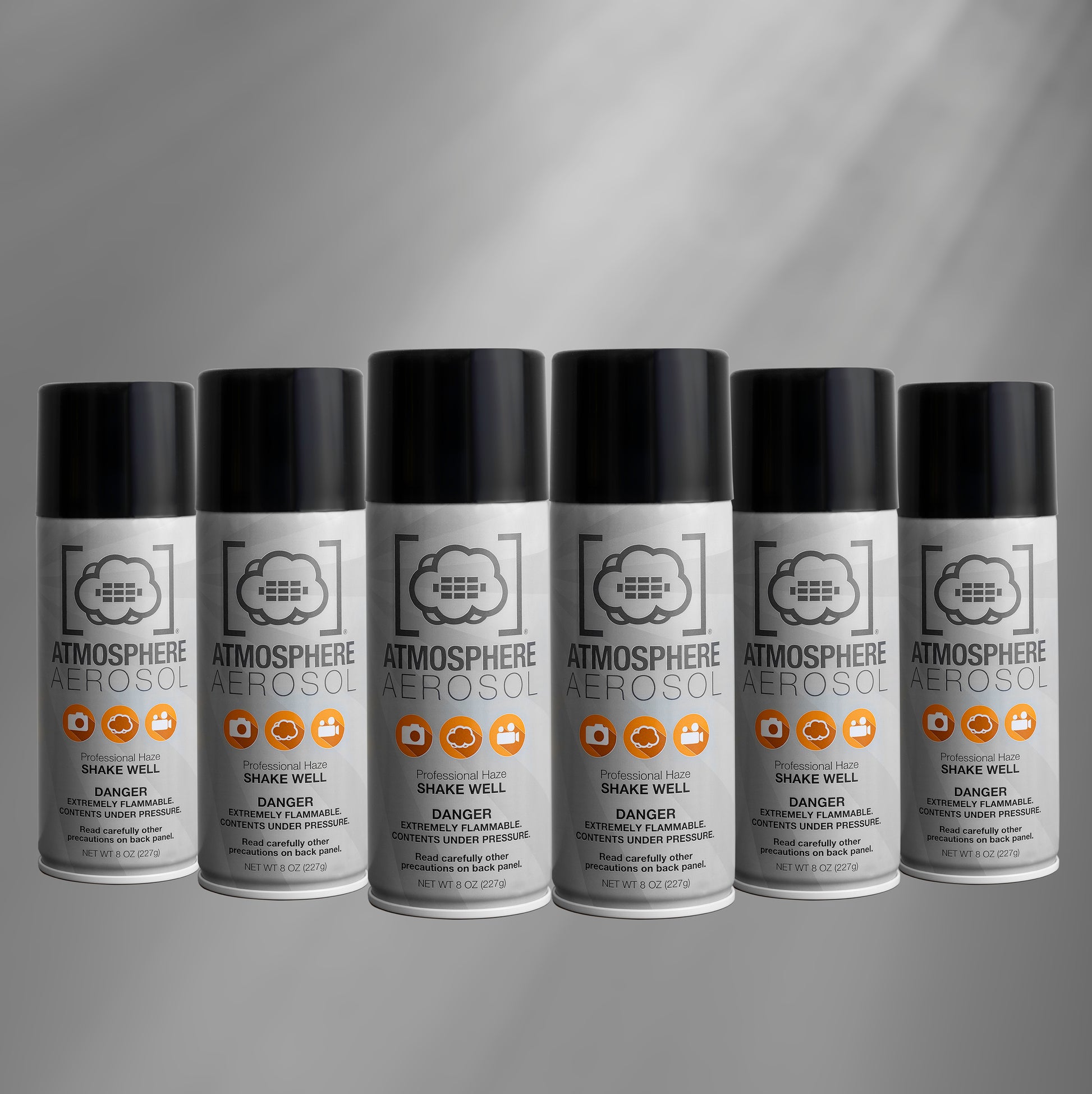 Atmosphere Aerosol is used to quickly, easily and safely create a fog-like atmosphere on-the-go for photography and cinema. When sprayed in an enclosed room or area without wind, and then backlit, it enhances photos and films. Odorless, non-toxic, clear, no stain spray.