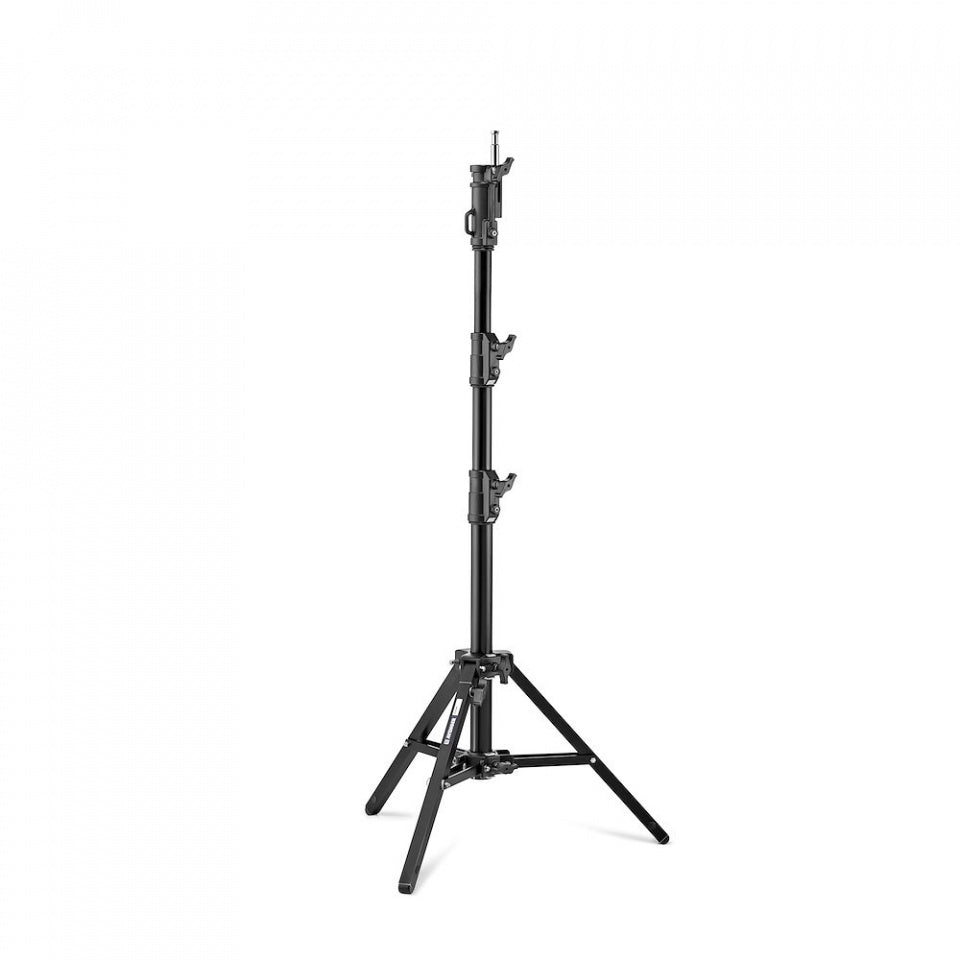 The Avenger A1020 Black Aluminum Combo light stand is a 3 section stand with 2 risers and features a mobile column. This stand is complete with a levelling leg, captive locking T-Knobs and captive collars. The combo top Universal Head has a non-threaded 16 mm/ 5/8 in retractable baby spigot and a Junior 28 mm/ 1 1/8 in receiver. This combo stand is really popular with 1X1 and 2X1 LED light panels!