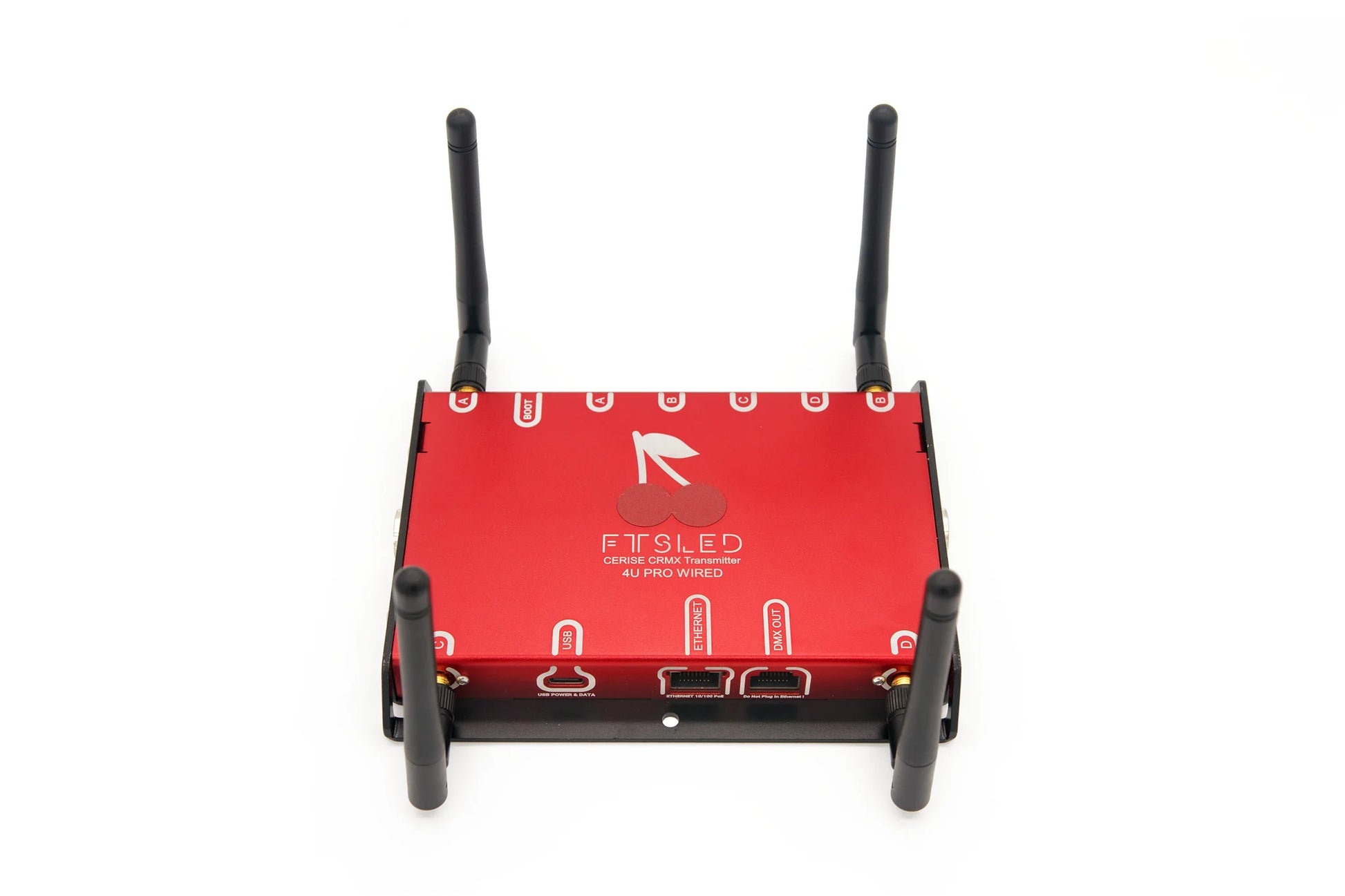 CERISE is the best solution for your DMX projects. This state-of-the-art transmitter designed in France has unmatched transmission power thanks to its external antenna and offers optimal wireless performance for faster response time and zero latency. Cerise Four Pro Wired is capable of transmitting 4 CRMX universes and 4 wired DMX universes , simple and fast connectivity via a single USB cable makes Cerise One the ultimate Plug & Play solution.