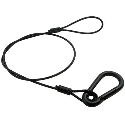 Lighting Safety Cables can be attached to fixtures to guard against them falling when the primary method of attachment fails. These steel cable assemblies are secured around a pipe or truss of a stage lighting fixture then clipped on itself using the attached spring clip. Safety cables are mandatory in most stage rigging applications as they afford an extra measure of security and protection from possible support structure failure.