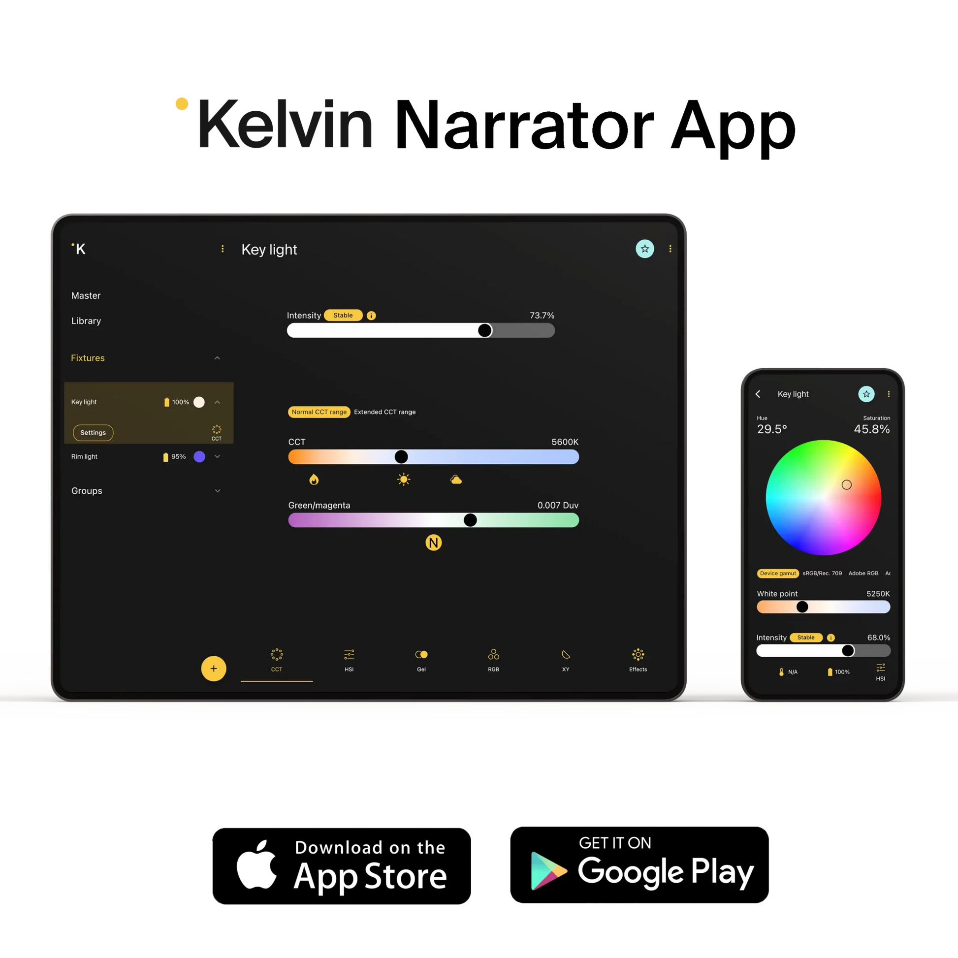 - Onboard, Kelvin Narrator App & Wireless DMX Control