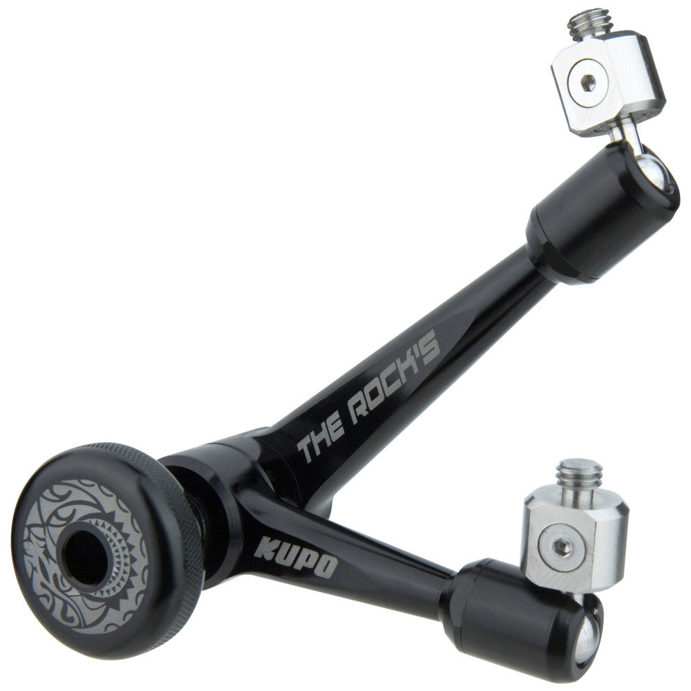 The 10in and 11in Rock’s Arm is a precise and versatile articulating arm that will support up to 17.6lbs and is designed for holding field monitors, recorders, LED lights and microphones on camera rigs. The friction wheel controls ball-joint tension simultaneously, making the arm handy and convenient to operate. The ends are engineered for 360 degree rotation plus 90 degree pivoting that provides great versatility for easy positioning. One end features a 1/4"-20 male stainless steel accessory tip, and the other end a 3/8"-16 male stainless steel accessory tip. A unique taper engagement mechanism facilitates fine ball-joint adjustment even when tightened. This provides a great solution for different connection and mounting needs in video and film.