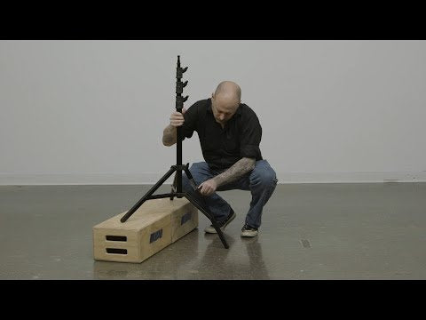 This is a premium stand with square legs for added stability and a leveling leg for uneven surfaces. Includes all metal locking collars with aluminum construction and is assembled with nuts & bolts for added durability The collapsible base has a welded 5/8" (16mm) stud attachment. It includes a sliding leg with a black finish.