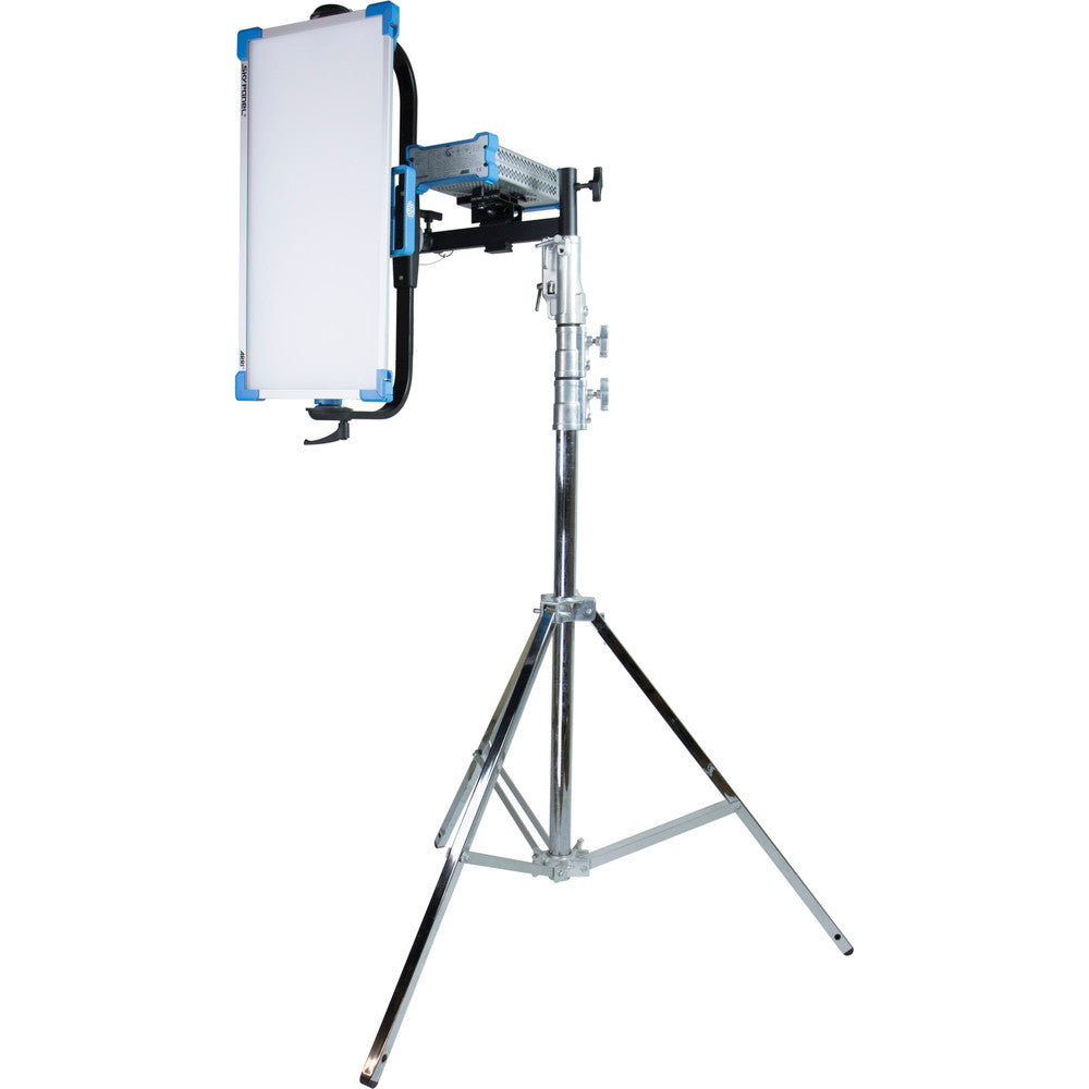 - The 15in (39cm) long panel offset arm features three junior receivers which enables a luminaire, like an ARRI Skypanel, to be mounted in an upright or level position