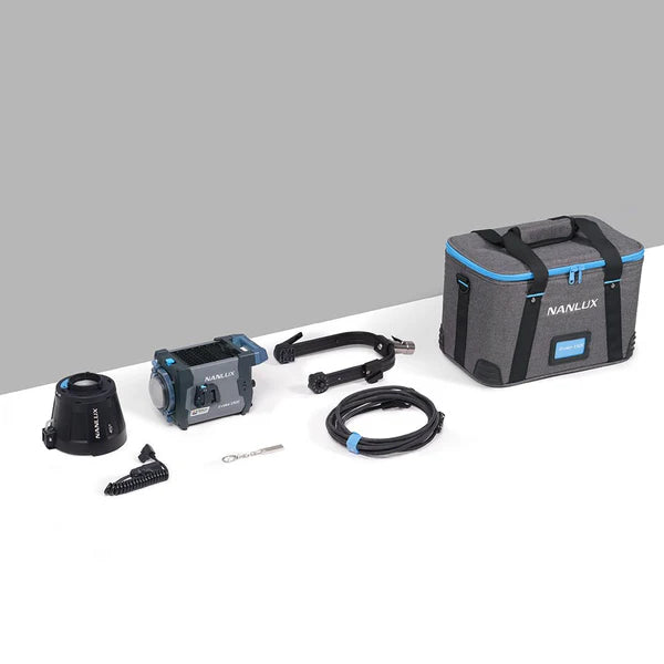 1 X Evoke 150C, 1 x Yoke, 1 x RF-FE-45 FE Mount Reflector 45°, 1 x AC Power Cable 4.5m, 1 x D-Tap Cable, 1 x USB Flash Drive, 1 x AS-MB-1 Magnetic Base, 1 x User Manual, and 1 x Carrying Bag